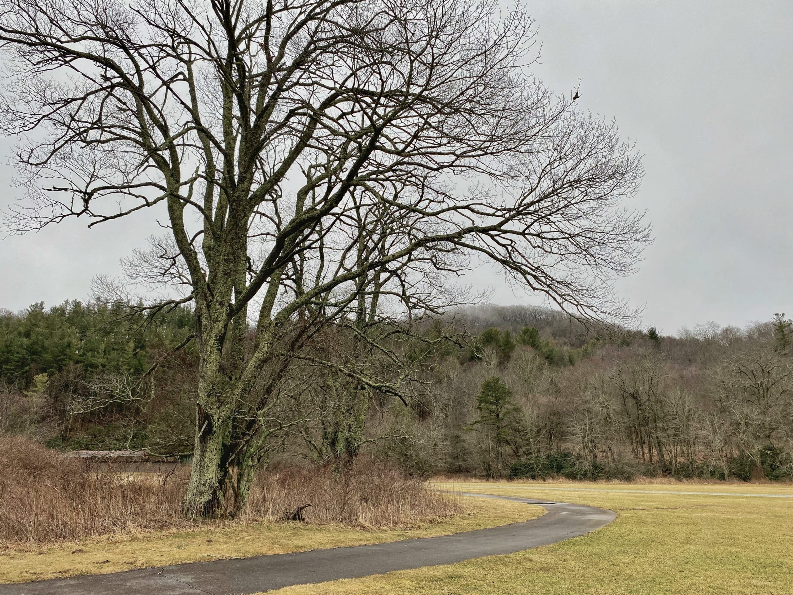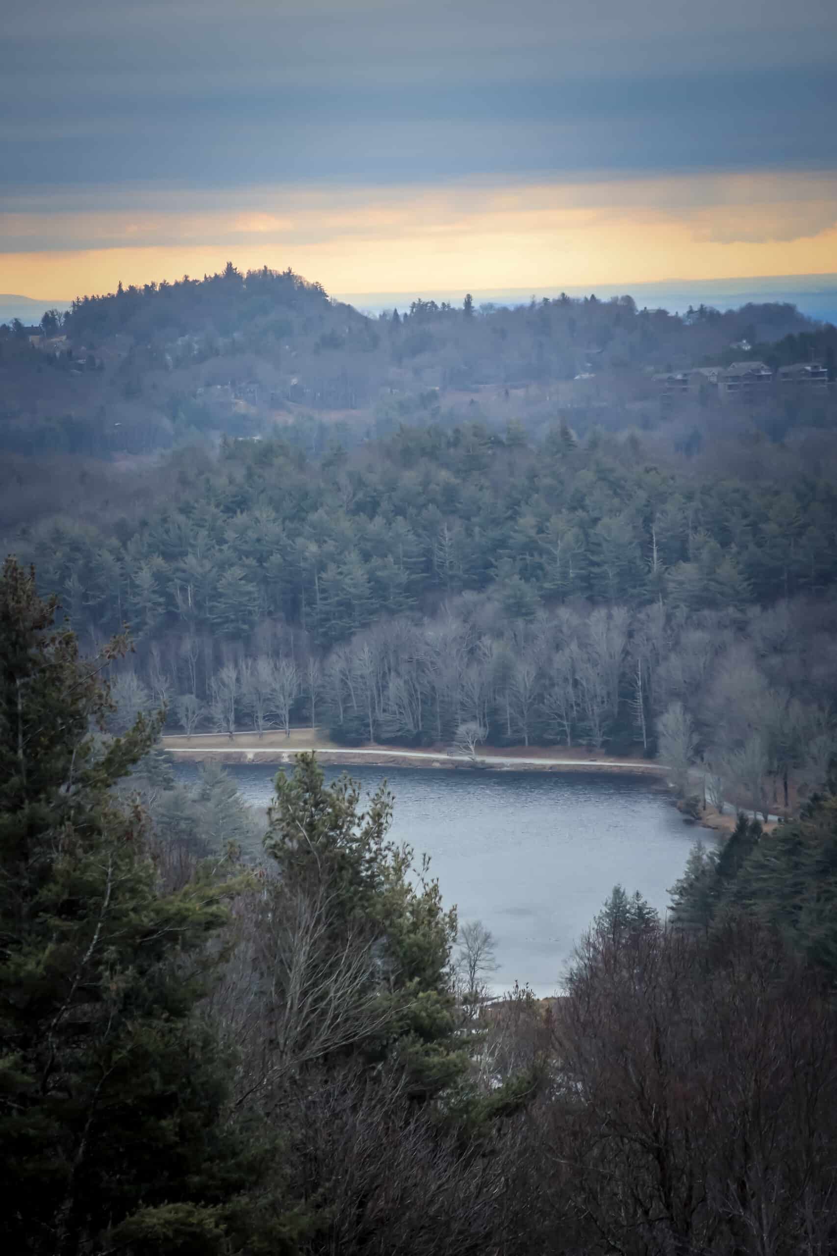 There are about 25 miles of trail in the carriage trail network at Moses Cone Memorial Park. The portion we enjoyed today is called The Maze due to the many switchbacks, twists, and turns taken to get to the Apple Barn. This walk to the barn doesn’t boast big mountain views, but it features many mossy logs, a sun-dappled trail, and the historic Apple Barn. The Cone Estate was a major apple producer for a time, and Moses Cone was quite the collector of varieties! This trail took 2 hours at a very leisurely pace. The trail itself gently slopes upwards so there is some climbing but it is not strenuous. It is mostly well maintained, but has washed out a bit in places. Due to entering the trail from Bass Lake, you also get great views of Bass Lake, and depending on how you walk around the lake, you can see Cone Manor. It is recommended to wear layers for this hike as areas around the lake and on the Maze can be quite windy in winter. Please also make sure to pack water as it is easy to become dehydrated even in the winter months!